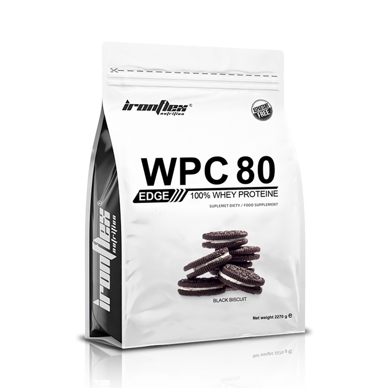 IronFlex WPC80 Edge (2270 g) to suplement diety dostarczający pełnowartościowego białka, zawierającego wszystkie niezbędne aminokwasy. Powstał on z myślą o osobach aktywnych fizycznie, które chcą w szybki i wygodny sposób zwiększyć podaż protein w swojej diecie, osiągając coraz lepsze cele treningowe i wspomagając regenerację po wysiłku. Produkt charakteryzuje się wysoką zawartością białka – aż 75,71 g na 100 g.
