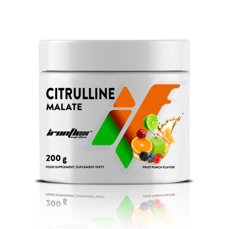 IronFlex Citrulline (200 g) to suplement dla osób ćwiczących, zawierający jabłczan cytruliny z dodatkiem witamin C i B6. Opakowanie to 80 porcji łatwego do rozpuszczenia proszku. Każda porcja dostarcza 2 380 mg jabłczanu cytruliny, 30 mg kwasu askorbinowego i 3 mg chlorowodorku pirydoksyny.