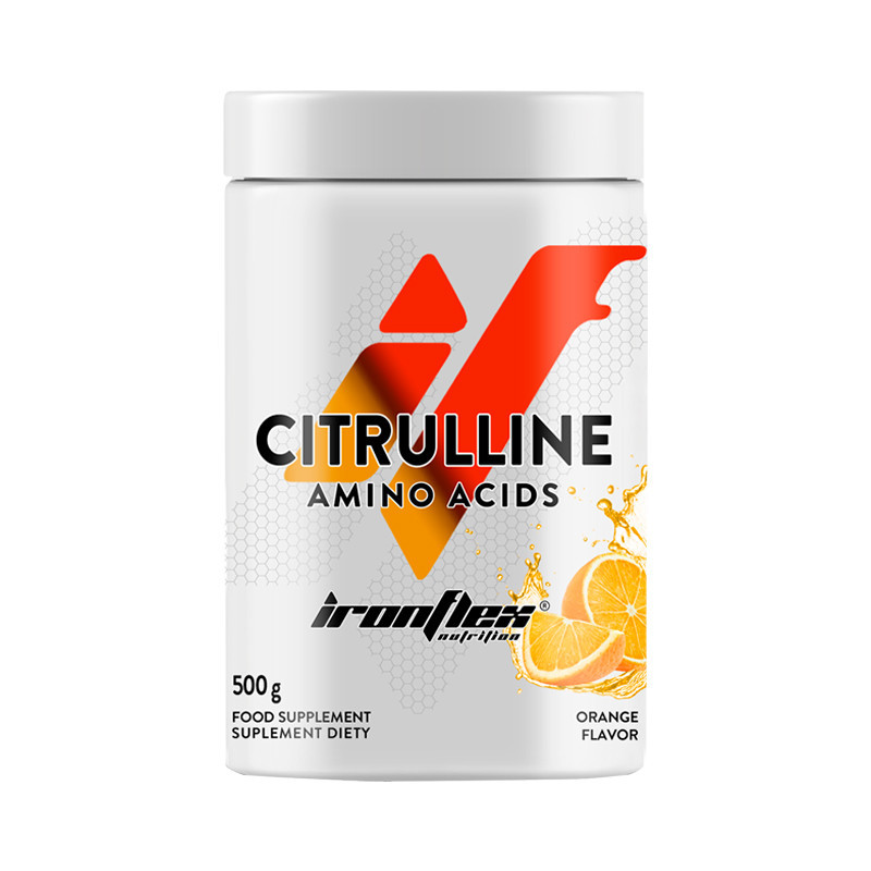 IronFlex Citrulline (500 g) to suplement dla osób ćwiczących, przygotowany na bazie jabłczanu cytruliny z dodatkiem witamin C i B6. Opakowanie zawiera 200 porcji łatwego do rozpuszczenia proszku. Każda porcja dostarcza 2 380 mg jabłczanu cytruliny, 30 mg kwasu askorbinowego i 3 mg chlorowodorku pirydoksyny.