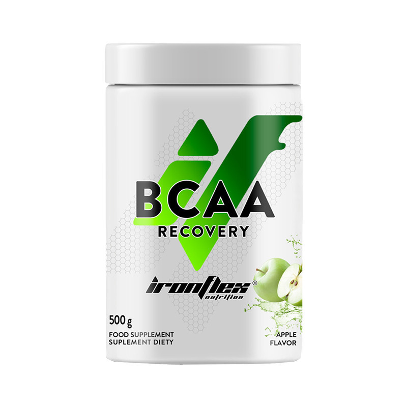 IronFlex BCAA Recovery to wydajny suplement w opakowaniu 500 g, który dostarcza kompleksową mieszankę aminokwasów rozgałęzionych BCAA (L-leucyna, L-izoleucyna i L-walina) w idealnym stosunku 2:1:1, wspierającą odbudowę mięśni i redukcję zmęczenia po treningu. Dodatkowo formuła zawiera L-glutaminę i taurynę, które pomagają zwiększyć wytrzymałość i przyspieszyć regenerację. Każda porcja dostarcza precyzyjnie dobrane ilości składników aktywnych – L-leucyna 22,2 g, L-walina 11,1 g, L-izoleucyna 11,1 g, L-glutamina 17,8 g oraz tauryna 17,8 g – dzięki czemu IronFlex BCAA jest idealnym wyborem dla osób trenujących siłowo, wytrzymałościowo lub w trakcie redukcji, które chcą maksymalnie wspierać swoje mięśnie i osiągać lepsze wyniki.
