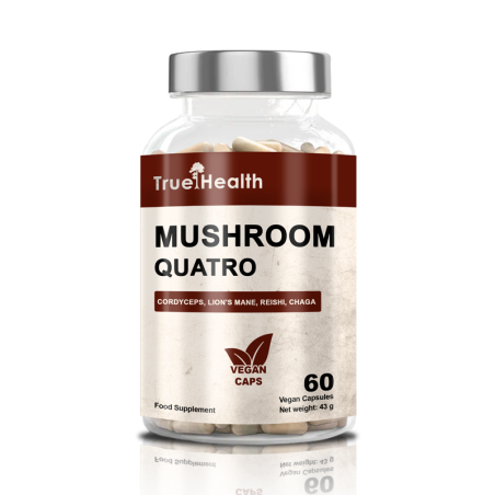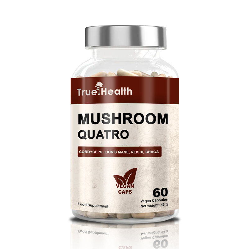 Składniki: Ekstrakt z owocnika Cordyceps sinensis, ekstrakt z owocnika Inonotus obliquus (Chaga), ekstrakt z owocnika Ganoderma lucidum (Reishi), ekstrakt z owocnika Hericium erinaceus (Lion's Mane), inulina; otoczka kapsułki: hydroksypropylometyloceluloza (HPMC). Może zawierać śladowe ilości: mleka (w tym laktozy), soi, orzeszków ziemnych, innych orzechów, sezamu, zbóż zawierających gluten, jaj, skorupiaków, ryb.