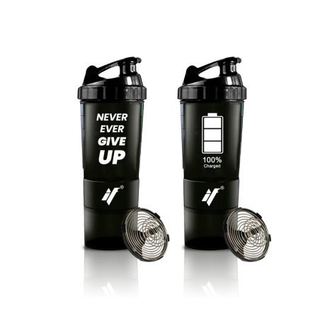 IronFlex Shaker (500 ml) sprawdza się na siłowni, w pracy i w podróży. Lekki, poręczny i łatwy do spakowania – mieści standardową porcję odżywki białkowej lub napoju potreningowego.