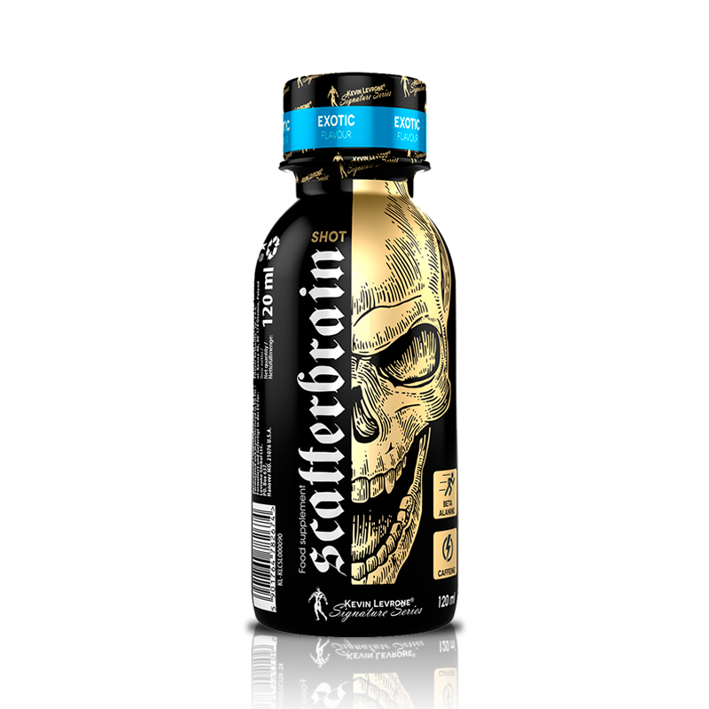 KEVIN LEVRONE SCATTERBRAIN SHOT 120ml, marki Kevin Levrone, to produkt wieloskładnikowy. Beta-alanina przyczynia się do działania anabolicznego, chroniąc przed katabolizmem, zapewniając maksymalną wydolność, zastrzyk energii, zwiększoną koncentrację, skupienie i pamięć, poprawioną pojemność buforowania, niwelowanie wolnych rodników oraz usprawnienie regeneracji powysiłkowej.