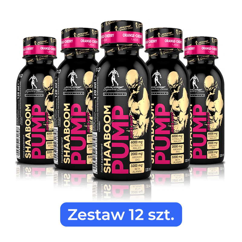 Kevin Levrone Shaaboom Juice Shot – zestaw 12 szt. to mocna przedtreningówka w wygodnej formie gotowych shotów, stworzona z myślą o osobach, które oczekują maksymalnej wydajności na treningu. Formuła opracowana przez Kevina Levrone łączy składniki wspierające energię, wytrzymałość oraz efekt pompy mięśniowej, pomagając wynieść każdą sesję treningową na wyższy poziom. Poręczne butelki o pojemności 120 ml sprawiają, że suplement możesz zabrać ze sobą wszędzie i sięgnąć po niego dokładnie wtedy, kiedy potrzebujesz solidnego zastrzyku mocy.